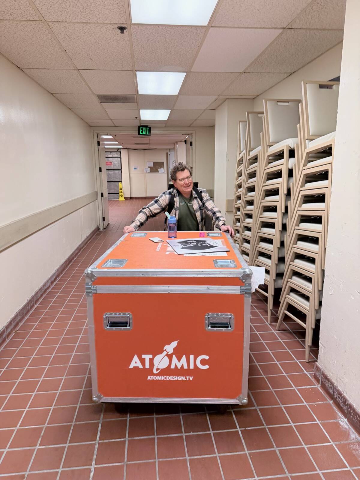 I produce it, co-write it, write and direct three short lifetime honoree documentaries, cast it, create the 250+ graphic deck, and work with a wide variety of talented techs (lighting, video graphics) … my typical “joke” is I do everything from hanging out with rock stars to bussing tables. The latter was an exaggeration … until this weekend when Friday morning I found myself pushing huge cases of gear from the dock to the ballroom … and then back again suddenly on Sunday morning.